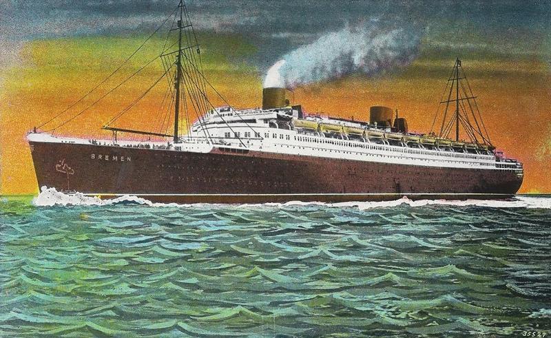 En una imagen con aire misterioso y trágico, el Bremen en la noche anterior a su partida de NY hacia su odisea.