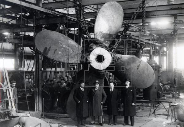 El Ing. Voulminot (sin sombrero) junto con inspectores del Lloyds en los años 30