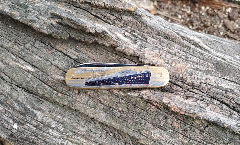 Hace màs de 5 años y medio comencé este post luego de haber conseguido una navaja de souvenir del transatlántico alemán Columbus. Luego de pasados estos años sin haber visto ninguna otra, hace poco pude hacerme con una a través de una plataforma electrónica y ya la detallo: