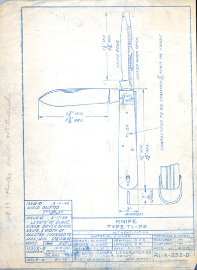 Esta navaja fue distribuida ampliamente en el ejército americano durante la segunda guerra mundial y posteriormente, suministrada en un estuche de cuero conjuntamente con una pinza. El estuche iba marcado "Pouch Type CS-34 - Signal Corps US Army, o sea dirigido a los electricistas del cuerpo de señales del ejército. Esta navaja es descendiente de la navaja del cuerpo de señales suministrada en la primera guerra mundial que era algo mas pequeña, y hay quienes afirman que la adopción del nuevo modelo corresponde a 1929 (por el nro. 29) siendo que en los años 20 y 30 habían fabricadas navajas muy similares.