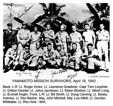 El capitán Thomas G. Lanphier Jr. dirigió a otros tres pilotos: el Sr. Barber, entonces teniente; El teniente Besby F. Holmes y el teniente Raymond K. Hine, en busca de los bombarderos, mientras que los otros 12 combatientes estadounidenses se concentraron en los ceros.