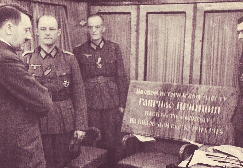 La paternidad del plan es indiscutible: era la obra del comandante de la 4ª Luftflotte, general Alexander Löhr y del creador del arma paracaidista general de Aviación Kurt Student (a quien recordarán por el episodio de la toma de la fortaleza de Eben Emael ya comentada anteriormente en el post “Como caída del cielo – la operación Granit”). Está totalmente fuera de dudas que Löhr ordenó realizar estudios sobre este plan a su Estado Mayor a finales de 1940. Eran estudios que versaban sobre operaciones en el flanco sudeste del Mediterráneo. Según Löhr, Inglaterra era el enemigo número uno y estaba convencido de que era necesario conquistar Egipto y el Mediterráneo oriental para acabar con el peligro que representaba Gran Bretaña. Alexander Löhr Hitler no tenía el mismo criterio, tan solo deseaba tener en sus manos la tierra firme griega, cosa muy comprensible, puesto que sus aspiraciones se orientaban mas bien hacia la Unión Soviética. Emprendió la campaña de los Balcanes (como ya vimos) en vista de la situación de Mussolini y de los golpistas de Belgrado, pensando que pronto acabaría con aquel pequeño obstáculo para sus planes de mayor vuelo. Había que convencer a Hitler, pero antes había otros a quienes persuadir. El general Löhr conferenciaba con el jefe de Estado Mayor de su Luftflotte, cuando comenzó a perfilarse el rápido éxito de la campaña de los Balcanes. El y el general Korten estuvieron enseguida de acuerdo en que la conquista de Creta era el paso siguiente y más adecuado para el dominio de Egipto. Löhr se encargó de presentar la idea del plan a Göring el 15 de abril, pero el Mariscal del Reich demostró interesarse muy poco en ella. Poco después Löhr tuvo la oportunidad de comentarla con el jefe de Estado Mayor de la Luftwaffe , general Jeschonnek, y éste quedó cautivado con la idea. Sobre si este plan fue presentado a Göring y Hitler por Jeschonnek o si el general Student tuvo la misma idea – es algo secundario – Lo cierto es que el especialista en desembarco aéreo Student fue convocado por Göring el 20 de abril (dia del 52 cumpleaños del Führer) y una fecha después por Hitler – que lo recibió en su cuartel general – a la sazón un tren especial en Mönichkirchen (una estación de deportes de invierno y montaña, en Austria). Hubo un largo debate acerca de si el objetivo de esta operación de desembarco desde el aire debía ser Creta o la fortaleza de Malta, ya muy dañada por los bombardeos. Göring y otras autoridades llegan a la estación de Mönichkirchen donde estaba estacionado el tren especial de Hitler - quien tomaba unos días con motivo de su 52 cumpleaños Una perlita ocurrida en esa oportunidad: Oficiales de la Wehrmacht obsequian al Führer con la placa erigida en Honor de Gavrilo Princip - autor del asesinato del Archiduque Francisco Fernando en 1914 - y que había sido colocada en 1930 en la esquina de la calle de Sarajevo - Yugoeslavia (actual capital de Bosnia y Herzegovina) donde ocurrió el magnicidio que sumiría a Europa en la 1a guerra mundial. La foto está tomada en el interior de uno de los salones del tren especial. El momento en que es retirada la placa (que resultó destruída en un museo de Berlín al final de la guerra) Student convenció al fin a Göring y a Hitler de que era preciso conquistar Creta. Para ello había un argumento estratégico, muy afín también al criterio que abrigaba Hitler – los campos petrolíferos de Ploesti, en Rumania – considerados como la madre nutricia de la maquinaria de guerra alemana, se encontraban difícilmente al alcance de los bombarderos ingleses de Malta, pero sin duda entraban en el radio de acción de las bases en Creta. Student desde luego, quería demostrar el alto grado de preparación de sus tropas de desembarco. Por fin Hitler dio su consentimiento para el ataque contra Creta, mas no sin antes imponer una serie de condiciones. En primer lugar, la operación debía ponerse en marcha lo antes posible y terminar a la mayor brevedad con el fin de poder disponer en seguida de las unidades necesarias, y sobre todo de los medios de transporte para el ataque contra Rusia. Exigió además, que el plan se desarrollase también por mar, de modo que la operación no “caminase sobre una sola pierna” El jefe supremo de la Luftwaffe – Göring – introdujo también su proposición táctica: sería adecuado limpiar la isla – de forma alargada – con un amplio frente a fin de tomar el mayor número posible de puntos al mismo tiempo. Extrañamente, el gral. Student aceptó este criterio pese a que debiera haber sabido que con los escasos medios de transporte disponibles sólo podrían trasladarse al mismo tiempo pequeñas unidades en puntos distantes. El primer proyecto de Student para un plan de ataque preveía siete lugares en los que tomar tierra a lo largo de la costa norte de la isla. Esto no correspondía en absoluto a la opinión de Löhr, a quien se había encomendado el mando supremo de la operación. Por otra parte, en esta circunstancia y por primera vez, un general de aviación iba a dirigir una operación conjunta de tropas aéreas, navales y de tierra. El plan definitivo se estructuró así: había que tomar al mismo tiempo los tres aeródromos situados en las costa norte - Maleme, Rezimnon e Iraklion – así como la capital, La Canea, junto con el puerto cercano de la bahía de Suda, el único en servicio de la isla. Las premisas para el éxito de un ataque en estas condiciones, cuyo alcance aún no se conocía, eran la preparación detallada y básica del plan. Esta regla se había observado en todas las operaciones aéreas de desembarco realizadas hasta el momento – todas ellas a imagen y semejanza de Eben Emael. En la Operación Merkur no fue posible por falta de tiempo. La orden del führer por la que se ponía en marcha llevaba fecha del 25 de abril, y el momento elegido para su realización se situó a mediados de mayo, por 