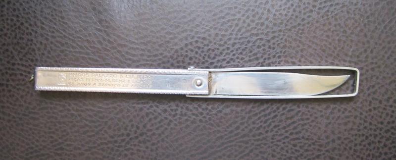 Lleva estampada en una de las caras la publicidad de una firma brasileña distribuidora de piezas de repuestos Mercedes Benz y Scania: “Irmaos Palazzo y Cia. Ltda” en la ciudad de Pelotas, que festejaba sus 25 años de existencia. Como no hay cuño del fabricante de la navaja, el dato de la publicidad va a resultar fundamental para ubicarla en el tiempo, según indicado en el catastro de empresas brasileñas esta empresa fue fundada en el año 1970, entonces el 25 aniversario corresponde al año de 1995. La empresa tiene dirección en la Rua Senador Mendonca 264 de la ciudad de Pelotas.