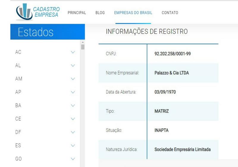 La página del catastro de la firma publicitaria Palazzo