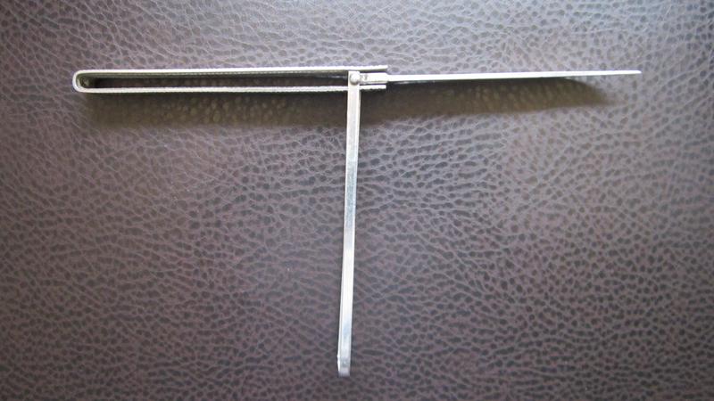Les detallo la pieza : mango de chapa inox plegada largo cerrada 115 mm, ancho 20 mm, espesor 8 mm, hoja también de acero inox. de 90 mm con un espesor de 2 mm. No lleva muelle, lo cual es una ventaja a la hora de posibles roturas.