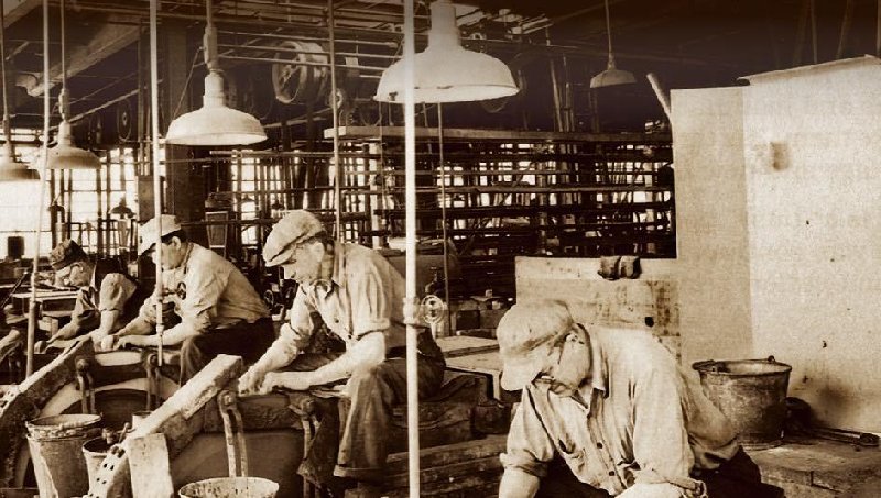 Una vieja foto de los talleres de Case