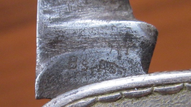 Tengo casi la certeza de que Bauer + Helbling también utilizaban los servicios de Feit & Olivari para manejar su publicidad (como lo hicieron los de la firma Johnson posteriormente como vimos en la navaja mas nueva) porque en el recazo trasero encima de las letras "Bs. As." apenas visible por el desgaste se alcanza a distinguir una letra F y en el final una letra I - indicando Feit & Olivari - a lo cual no le había prestado atención anteriormente.