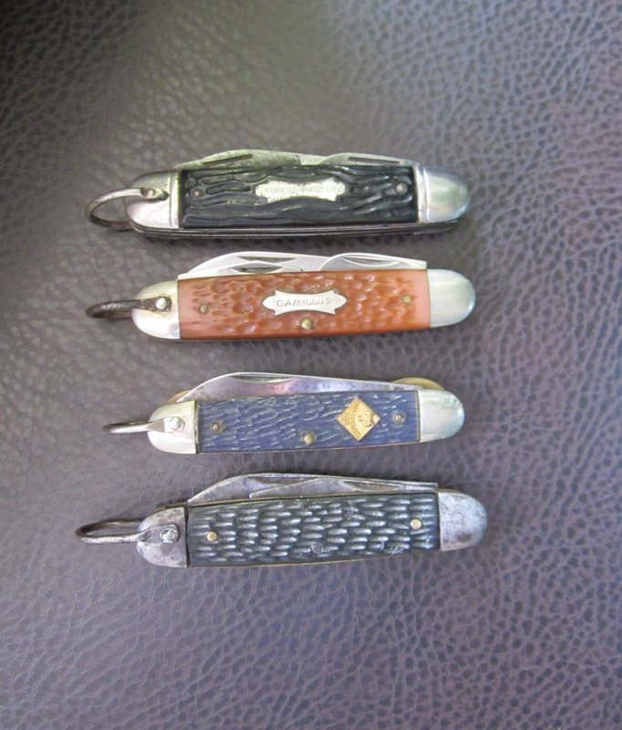 Mis navajas de la tipología Scout, la primera fue la adquirida en Casa Schiavo, es una Forest Master, fabricada por Colonial , Providence Usa. la segunda es una Camillus - fines de los años 80, la tercera es una Camillus de los años 70 - oficial de los Cub Scouts (rama que aqui se llama "Lobatos" - por ser los mas pequeños), y la última es una vieja Imperial de los años 36/52 del siglo pasado.