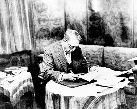 Otro pasajero famoso del Europa fue el magnate de la prensa norteamericana William Randolph Hearst (el ciudadano Kane). Aqui fotografiado en su camarote del Europa en 1931