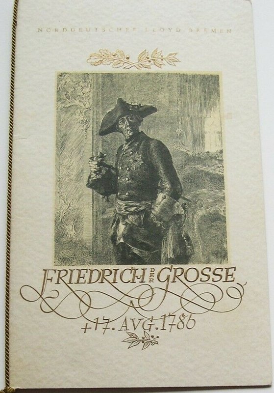 Una imagen del menú a bordo del Europa el 25 de julio de 1936, con un homenaje a Federico el Grande.