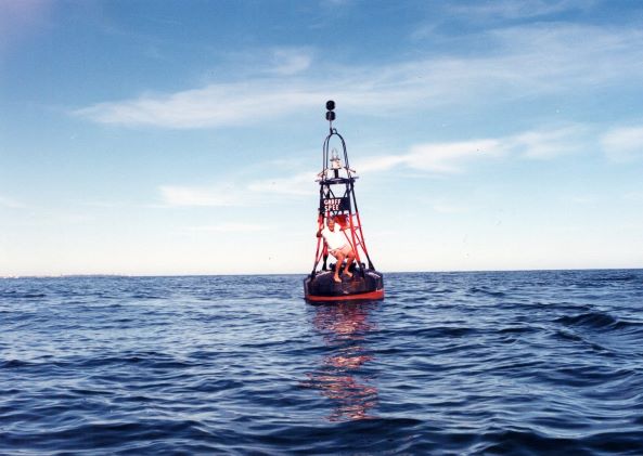El Graf Spee, con su posición marcada por una boya de atención a los navegantes