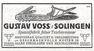 Gustav Voss Taschen und Federmesserfabrik fué fundada por el propietario de su nombre en Solingen en 1901, teniendo su sede en la calle Augustastrasse Nr. 20 entre los años 1901 y 1945. Sus marcas registradas fueron: "Fuchskopf" (Cabeza de zorro) en 1916 (cuyo cuño representaba una cabeza de zorro muy estilizada, al estilo de aquellos años), "Pallas" en 1920 y "Voss" en 1919.