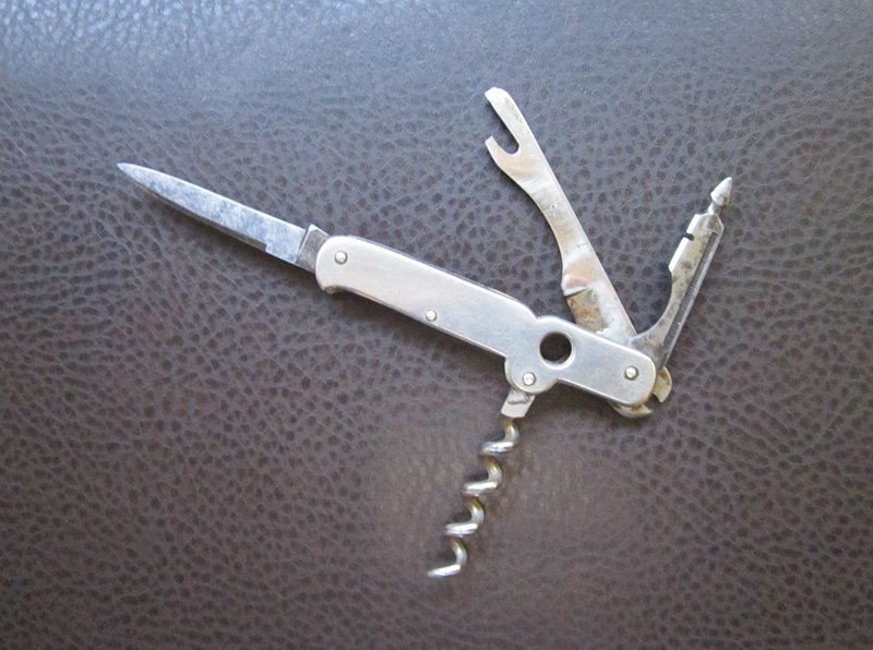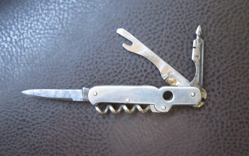 Se trata de una navaja multiusos de principios del S XX al estilo de las llamadas “de mozo” o “waiter”, “bartender”, “champañeras”, etc. Sin duda apuntando al uso del personal que atiende las mesas en los restaurantes. En este caso, sin embargo, la adición de la hoja de “manicure”, lleva a pensar más bien en el uso personal, además de tener un grandísimo parecido con las navajas tipo Rodgers Military Knives P 1633 y especialmente la navaja corta alambres de John Watts.