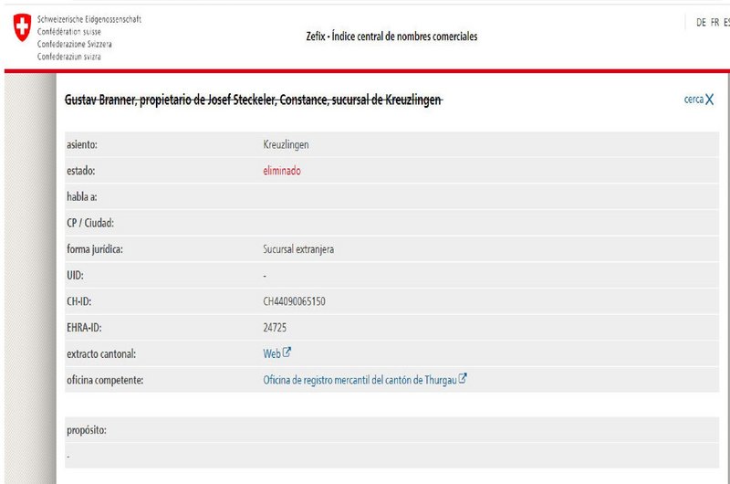 La firma Gustav Branner es una empresa que no fabrica, sino que se dedica a hacer negocios de todo tipo comprando y vendiendo bienes. Fundada en 1891, existe actualmente con sede en Suiza.