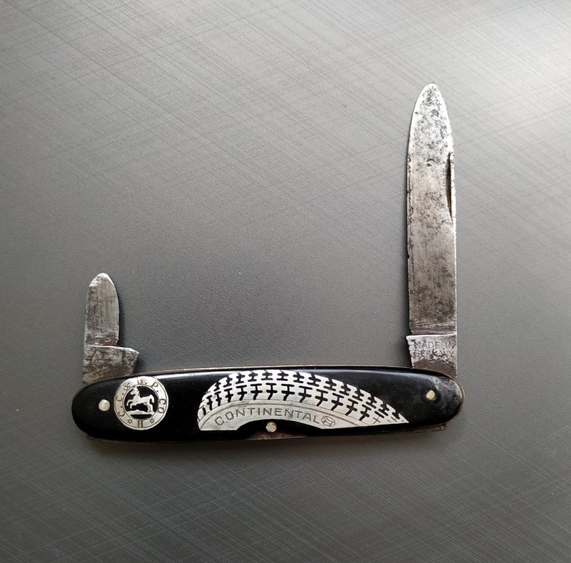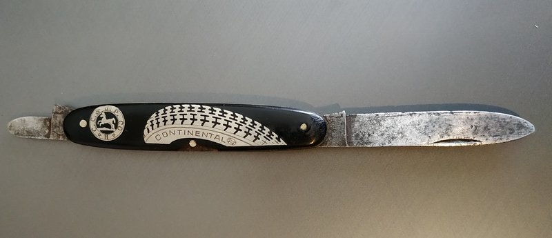 Se trata de una vieja navaja de la firma alemana fabricante de neumáticos Continental, encontrada en el rastro montevideano hace algún tiempo semi mutilada pero con buena presencia y que nos cuenta una vieja historia.
