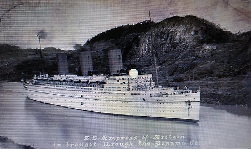 El Empress, cruzando el canal de Panamá a la altura de los lagos de Gatún, durante el World Tour 1936