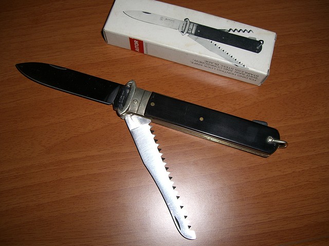 NAVAJA DE CAZADOR, HUNTING KNIFE, 361.176, con extractor de cartuchos, “EXTRACTORA” en micarta negra de Aitor del catálogo de 1981 y, aunque me repita, podríamos decir que de la “Época Dorada” de Aitor.