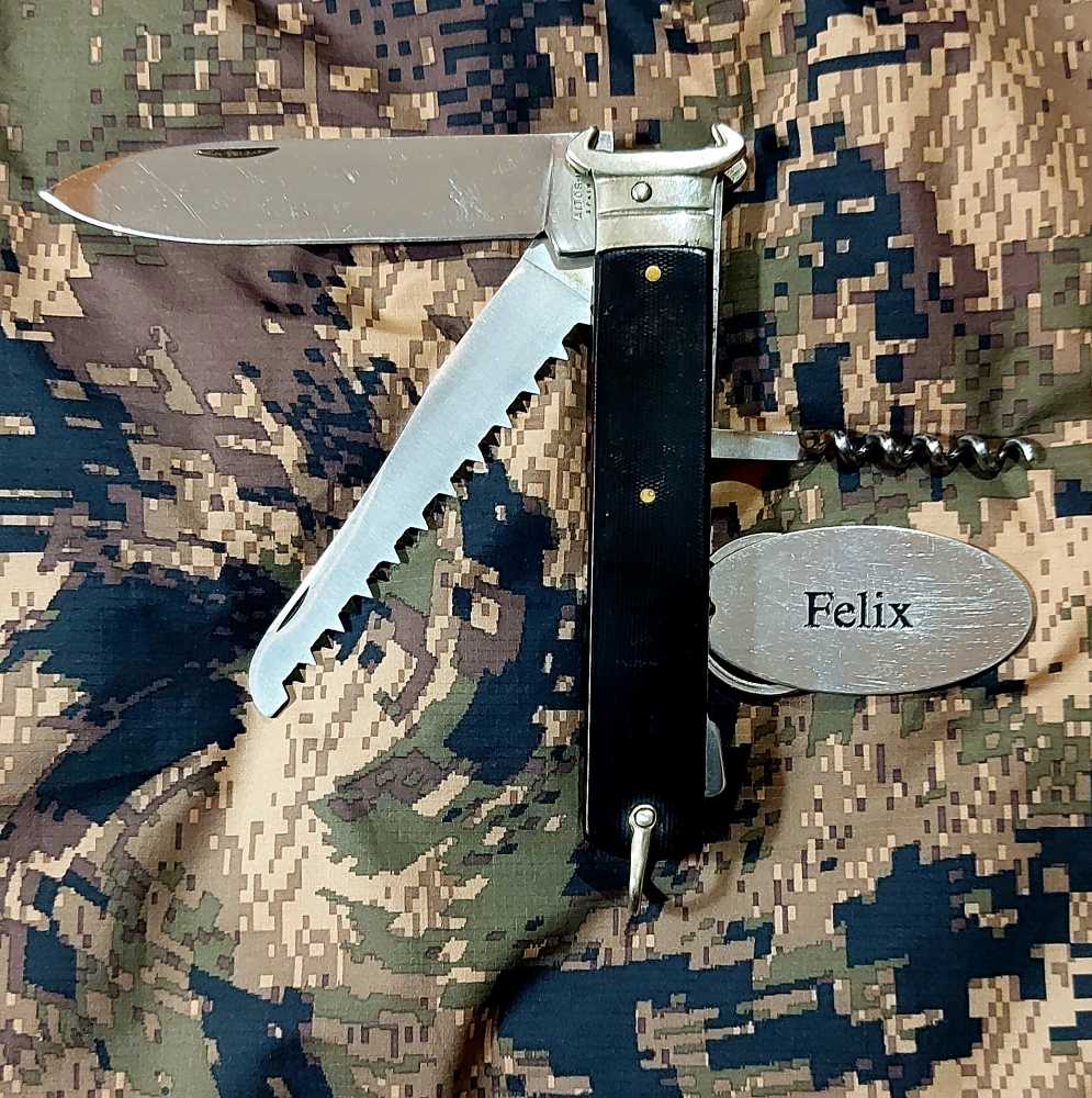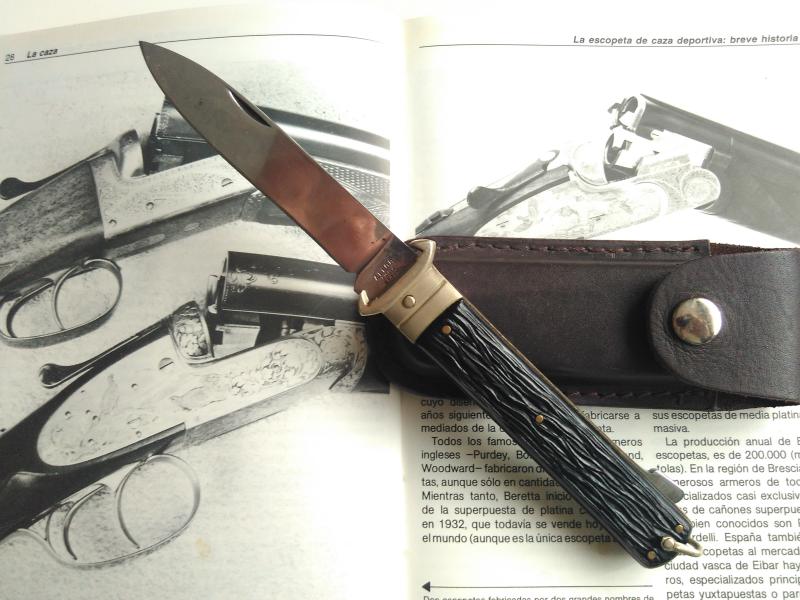 NAVAJA DE CAZADOR le viene “al pelo”, aunque hay muchas navajas con ese nombre, incluso alguna otra de AITOR, sus características, sus “usos”, tamaño y la adicción de la virola plateada con “uñas” para la extracción de cartuchos la hacen una segura acreedora de ese título,