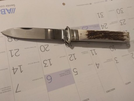 Longitud de la hoja: unos 105 milímetros de acero AITOR INOX SPAIN, semipulido, y digo unos 105 milímetros porque esa es su longitud oficial, aunque la mía, medida por mí, tenga solo 103 milímetros.