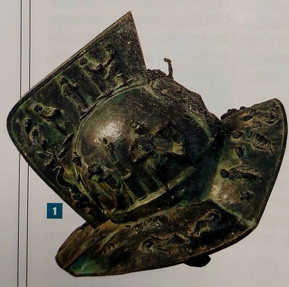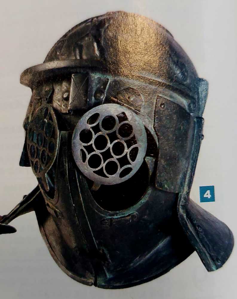 Los participantes no acaban de ponerse de acuerdo en el origen de esta tipología, ni en su forma real, aunque, al parecer es más común en dibujos actuales de gladiadores que en en hallazgos arqueológicos, aún así hay uno que me ha llamado la atención y que voy a incluir en el post.