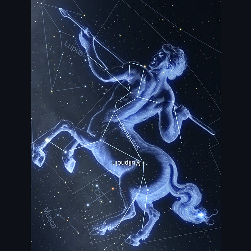 La constelación del Centauro representa, como su nombre indica, la figura de un centauro, no siendo esta la única constelación basada en esta criatura ya que también la constelación de Sagitario es representada por un centauro que sostiene un arco y una flecha.