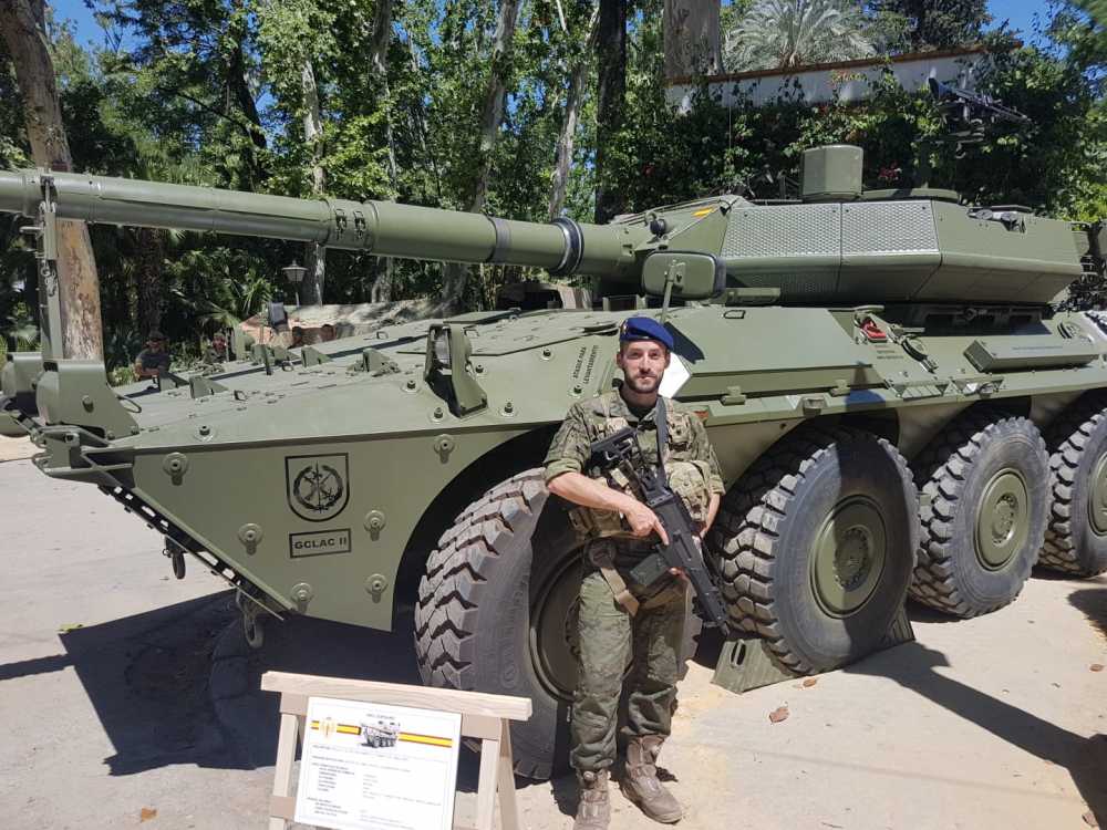 Aquí vemos a uno de estos vehículos perteneciente al Grupo de Caballería Ligero Acorazado "Reyes Católicos" II de La Legión, expuesto, en 2019, durante la celebración del Día de las Fuerzas Armadas en Sevilla. Delante del vehículo se encuentra un Oficial, piloto de ataque de HA-28 (Tigre), perteneciente al BHELA I, que sirvió anteriormente en ese Grupo de Caballería.
