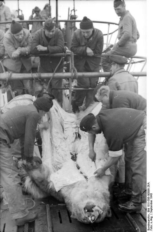 En esta foto de 1943, se puede apreciar a los marineros de este submarino alemàn, despellejando un oso polar que habìan cazado cuando patrullaban el Artico, me parece ver que se trata de "matrosenmesser" y posiblemente...de Lutters!!