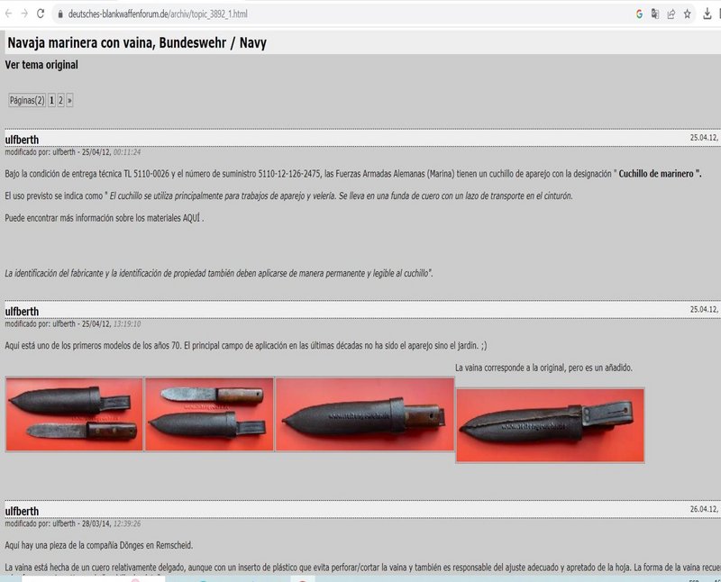 Copio aquì captura del post en foro alemàn (traducciòn mediante) sobre el uso del matrosenmesser en la Bundes Marine
