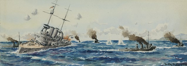 En la oscura noche del 12 de mayo de 1915, es decir, diecisiete días después de producirse los desembarcos aliados en la península de Gallìpoli, el acorazado inglès Goliath, que se hallaba fondeado en la bahía de Mudros, recibió tres torpedos lanzados por el destructor turco Milich, que pegándose bien a la costa, había logrado burlar la vigilancia enemiga. Este buque llevaba a bordo varios marinos alemanes, el teniente de navío Firle como comandante, tres oficiales y seis marineros de la Kriegsmarine. El Goliath zozobrò rápidamente y tras permanecer algún tiempo con la quilla al aire, se fue a pique llevándose a 571 hombres de la dotación.