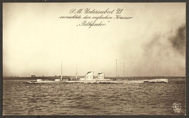 El U21, que teóricamente no disponía de suficiente autonomía para llegar a Cattaro, en Montenegro, salió de Wilhelmshaven, el 21 de abril de 1915 y entrò una noche en la rìa de Corcubiòn, donde subrepticiamente tomò combustible de un vapor enviado al efecto.