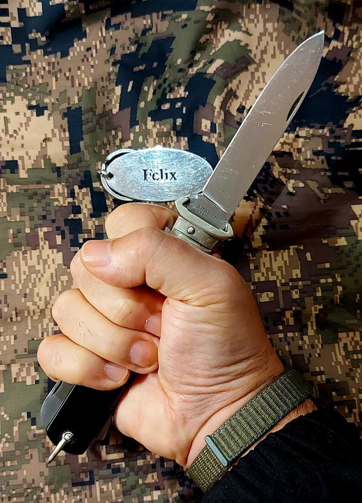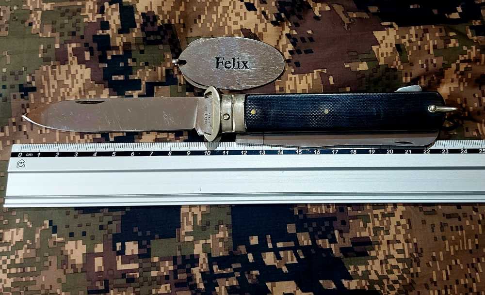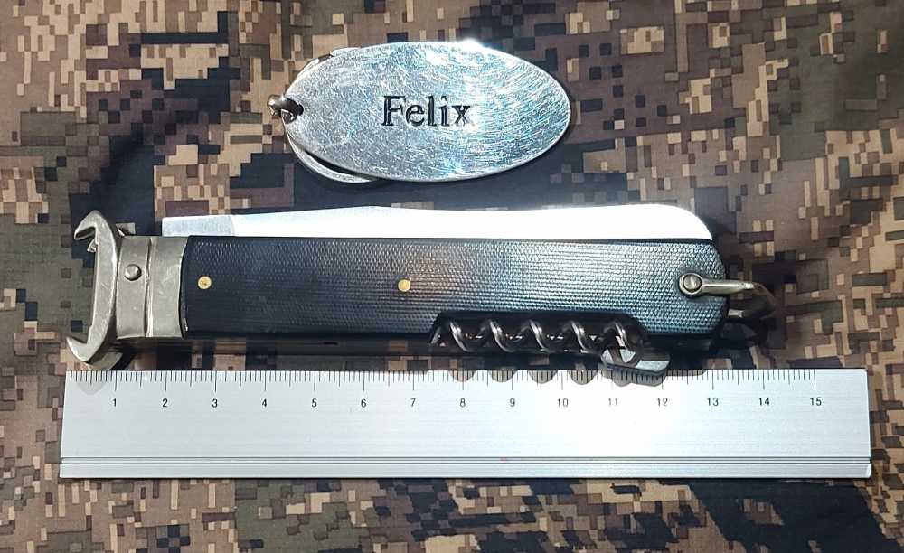 Longitud total de la navaja plegada: 130 milímetros, sin contar la anilla. 140 milímetros con ella.